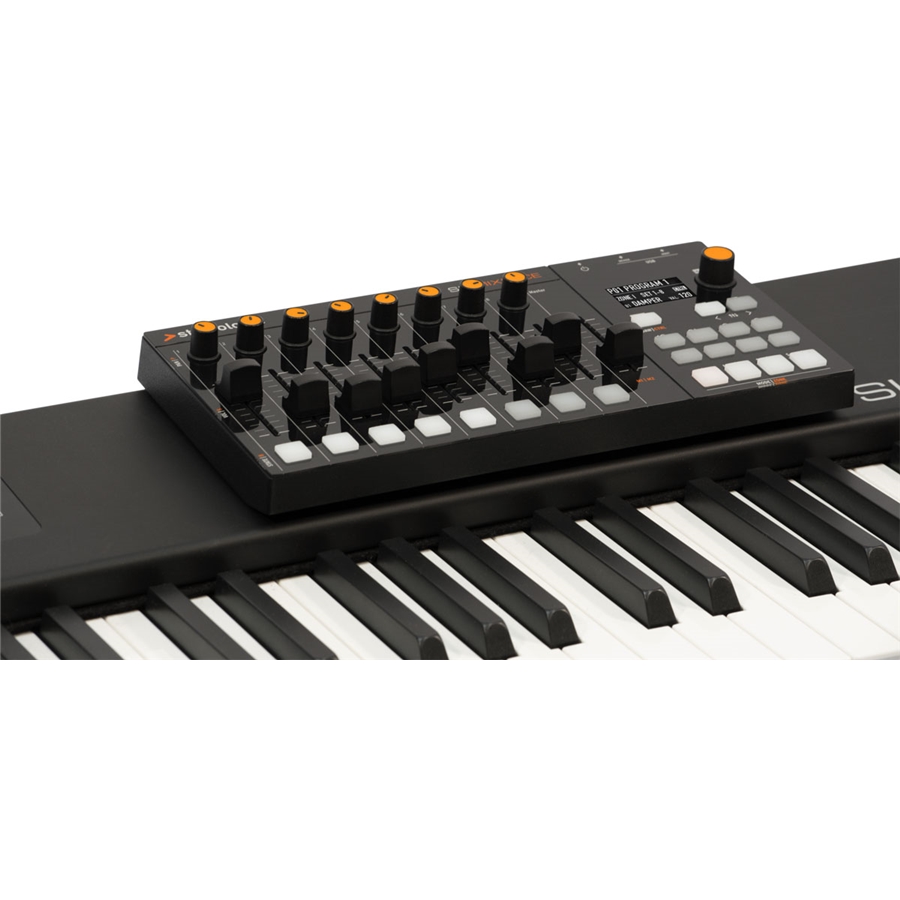 SL MIXFACE si adatta perfettamente alle Master Keyboard della serie SL, espandendo ulteriormente le loro già avanzate capacità. grazie ad un sistema magnetico è possibile fissarlo stabilmente ad ognuna di queste tastiere, fornendo così l’estensione naturale dei loro controlli, come ad esempio la gestione immediata dei 4 Layer.