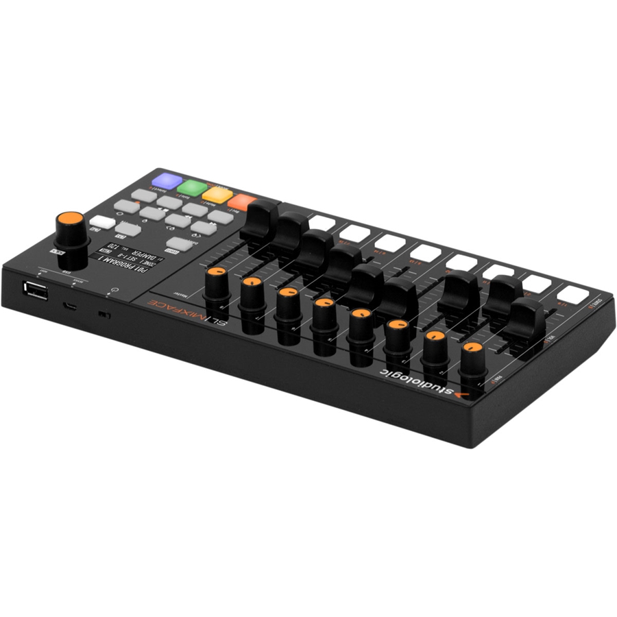 STUDIOLOGIC MIXFACE è un Controller compatto, può lavorare simultaneamente Stand Alone in ambienti DAW o come controllo MIDI vero e proprio. Ideale per musicisti e producer che operano in mobilità, possiede un’ampia dotazione di controlli fisici come: Encoder di navigazione, 8 Manopole, 9 Slider, 8 Tasti DAW , Rec, Mute, Solo, Select , 3 Controlli di traccia, Master Slider, tasti di Trasporto, Marker. il monitoring delle operazioni avviene con un luminoso Display OLED. Supporta direttamente le DAW più diffuse, è il complemento perfetto inoltre per le tastiere Studiologic serie SL, dispone di connessioni: Micro USB (Device) – USB Host, Bluethooth, alimentazione da Bus USB o a batterie.